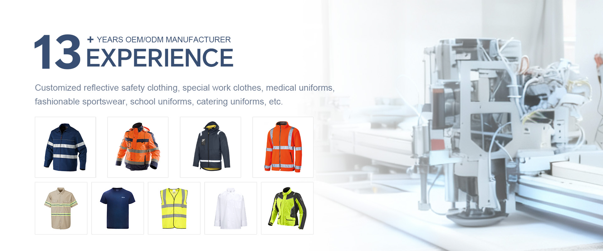 The manufacturer's technical infrastructure includes 300+ sets of automated equipment spanning bag opening machines, bar tacking systems, and four-needle six-stitching machines, supported by an in-house testing center conducting strength, flame retardancy, antistatic, and UV resistance assessments per US ANSI/ISEA 107-2020, EU EN ISO 20471, and Australian standards. Production capabilities encompass reflective safety garments with 3M reflective tape and 300D Oxford shell construction, flame-retardant and antistatic special work uniforms, and medical uniforms featuring fluid barrier technology. The company maintains ISO 9001:2016, ISO 14001:2016, and ISO 45001:2020 certifications alongside BSCI and ECOVADIS environmental compliance.